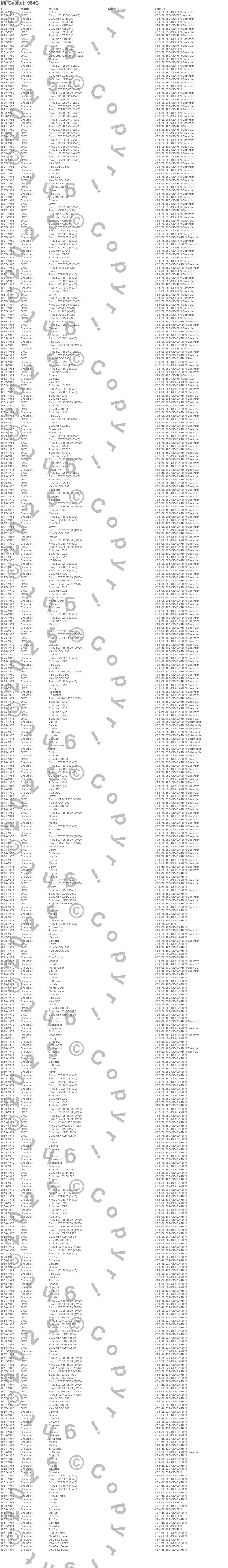 Bel Air, Biscayne, Blazer, Blazer K5, Brookwood, C10 Pickup, C10 Suburban, C15 Suburban, C15/C1500, C15/C1500 Suburban, C1500, C1500 Pickup, C1500 Suburban, C20 Pickup, C20 Suburban, C25 Suburban, C25/C2500 Pickup, C25/C2500 Suburban, C2500 Pickup, C2500 Suburban more…