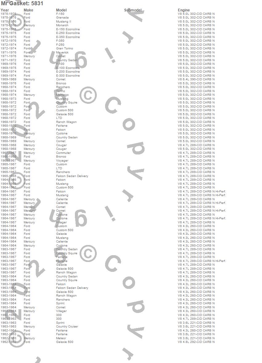 Below is an abreviated list of applications for the Ultra Seal Intake Gasket.