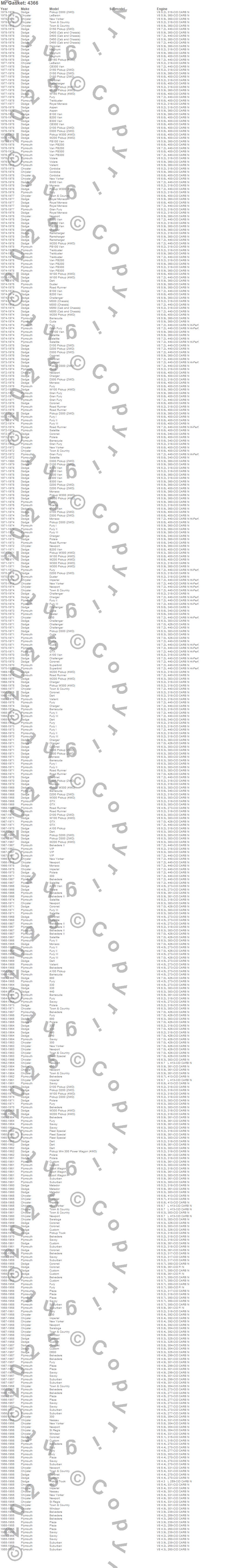 300, 330, 440, 880, A100 Truck, A100 Van, Aspen, B100 Van, B200 Van, B300 Van, Barracuda, Belvedere, Belvedere II, CB300 Van, Challenger, Charger, Cordoba, Coronet, Cuda, Custom more…