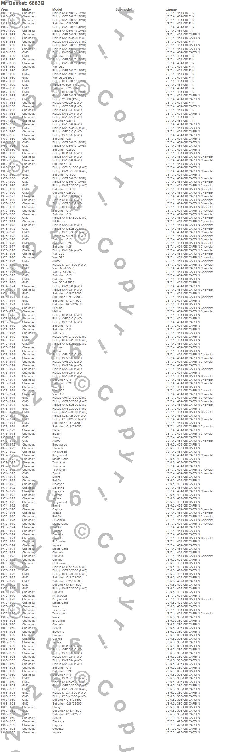 Bel Air, Biscayne, Blazer, Blazer K5, Brookwood, C10 Pickup, C10 Suburban, C15 Suburban, C15/C1500, C15/C1500 Suburban, C1500, C1500 Pickup, C1500 Suburban, C20 Pickup, C20 Suburban, C25 Suburban, C25/C2500 Pickup, C25/C2500 Suburban, C2500 Pickup, C2500 Suburban more…