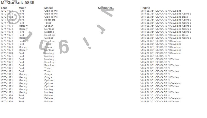 Below is an abreviated list of applications for the Ultra Seal Intake Gasket.