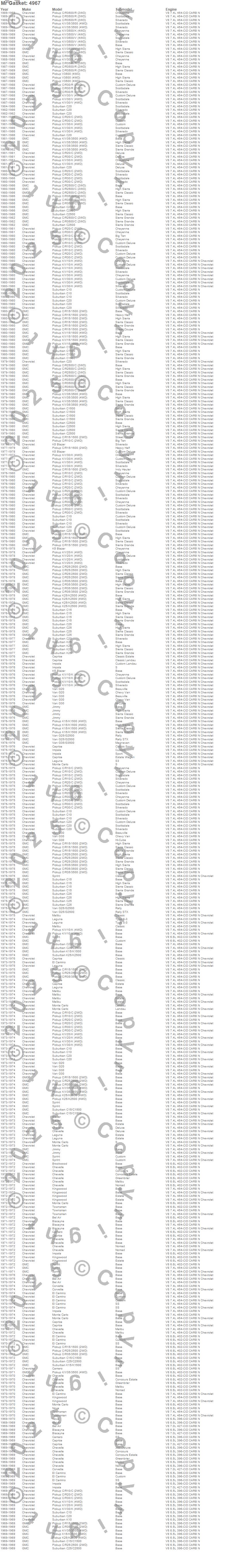 Bel Air, Biscayne, Blazer, Blazer K5, Brookwood, C10 Pickup, C10 Suburban, C15 Suburban, C15/C1500, C15/C1500 Suburban, C1500, C1500 Suburban, C20 Pickup, C20 Suburban, C25 Suburban, C25/C2500 Pickup, C25/C2500 Suburban, C2500 Pickup, C2500 Suburban, C30 Pickup more…