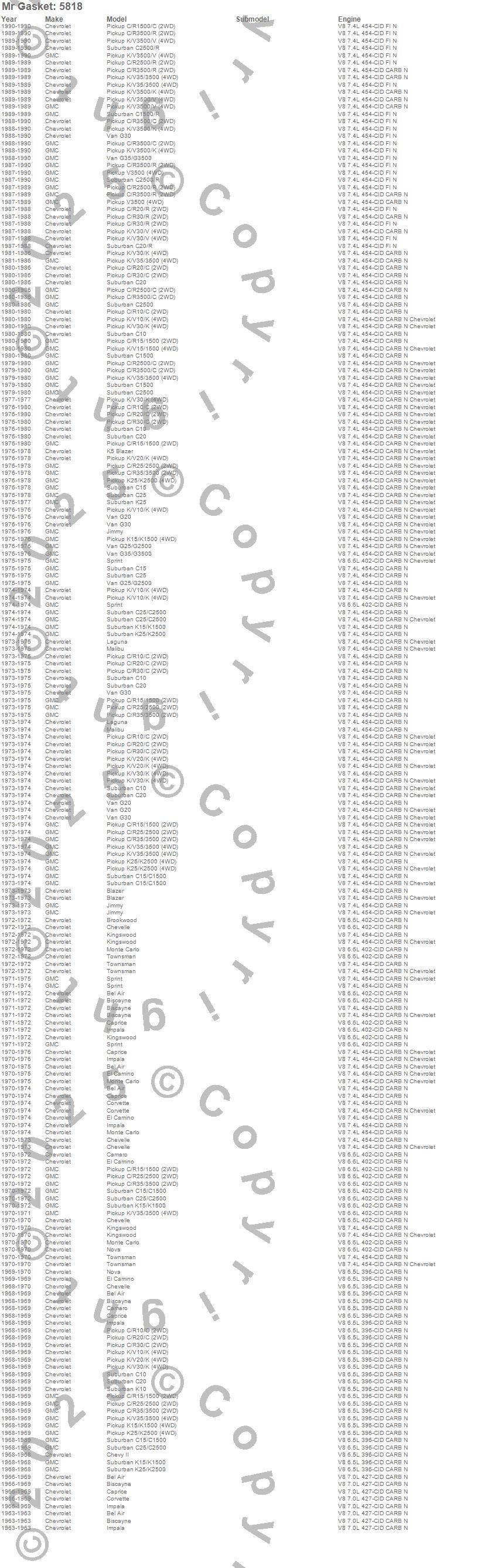 Below is an abreviated list of applications for the Ultra Seal Intake Gasket.
