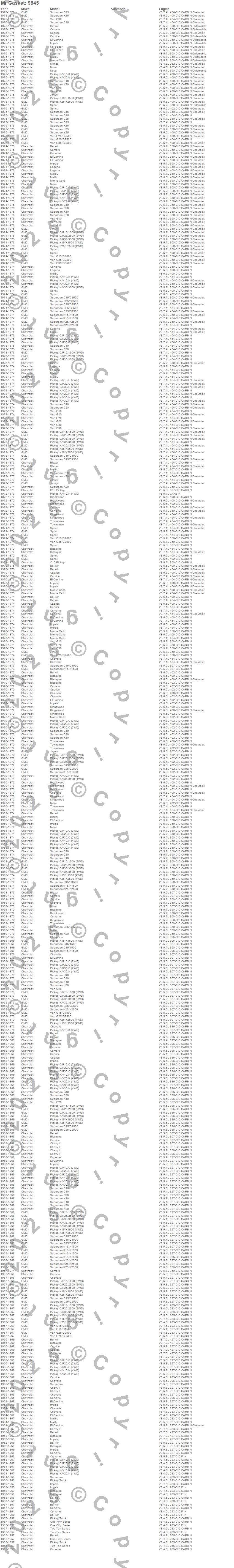 Bel Air, Biscayne, Blazer, Blazer K5, Brookwood, C10 Pickup, C10 Suburban, C15 Suburban, C15/C1500, C15/C1500 Suburban, C20 Pickup, C20 Suburban, C25 Suburban, C25/C2500 Pickup, C25/C2500 Suburban, C30 Pickup, C35/C3500 Pickup, C3500 Pickup, Camaro, Caprice more…