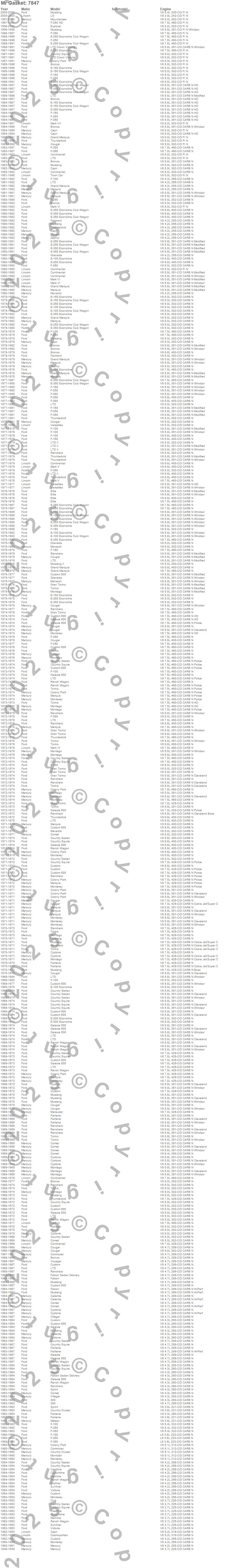 Bronco, Caliente, Capri, Club Cargo, Colony Park, Comet, Commuter, Continental, Cosmopolitan, Cougar, Country Cruiser, Country Sedan, Country Squire, Crestline, Custom, Custom 500, Customline, Cyclone, E-100 Econoline, E-100 Econoline Club Wagon more…
