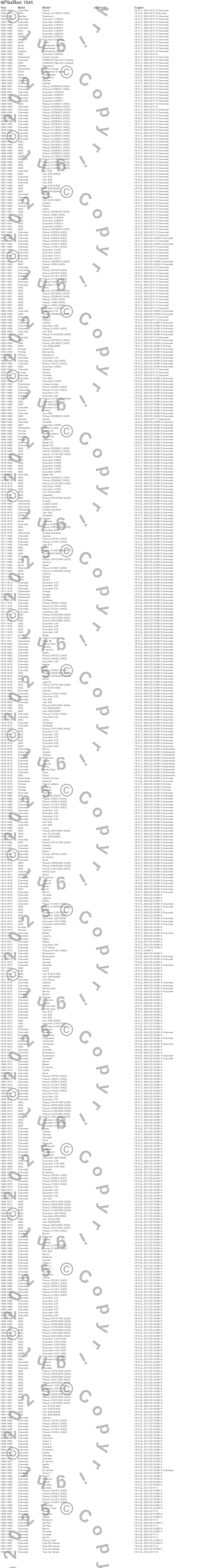 Bel Air, Biscayne, Blazer, Blazer K5, Bonneville, Brookwood, Brougham, C10 Pickup, C10 Suburban, C15 Suburban, C15/C1500, C15/C1500 Suburban, C1500, C1500 Pickup, C1500 Suburban, C20 Pickup, C20 Suburban, C25 Suburban, C25/C2500 Pickup, C25/C2500 Suburban more…