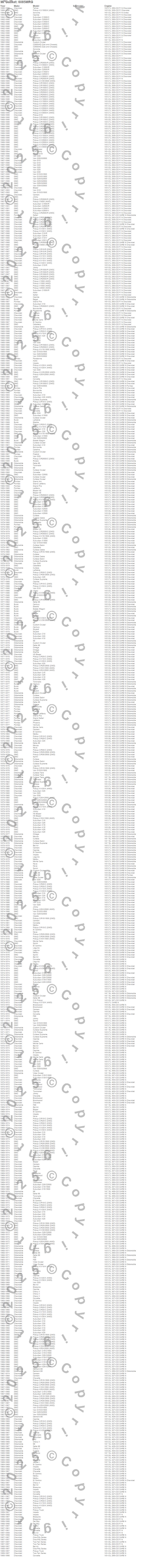 442, 98, Astro, Bel Air, Biscayne, Blazer, Blazer K5, Bonneville, Bravada, Brookwood, C10 Pickup, C10 Suburban, C15 Suburban, C15/C1500, C15/C1500 Suburban, C1500, C1500 Pickup, C1500 Suburban, C20 Pickup, C20 Suburban more…