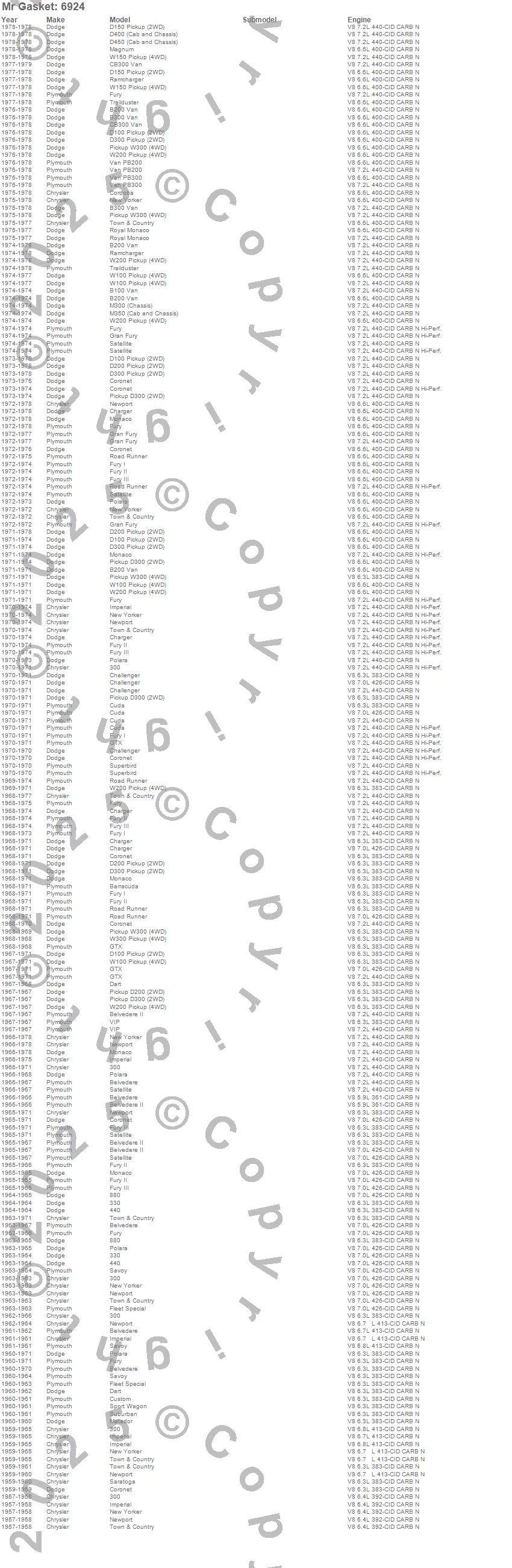 300, 330, 440, 880, B100 Van, B200 Van, B300 Van, Barracuda, Belvedere, Belvedere II, CB300 Van, Challenger, Charger, Cordoba, Coronet, Cuda, Custom, D100 Pickup, D150 Pickup, D200 Pickup more…