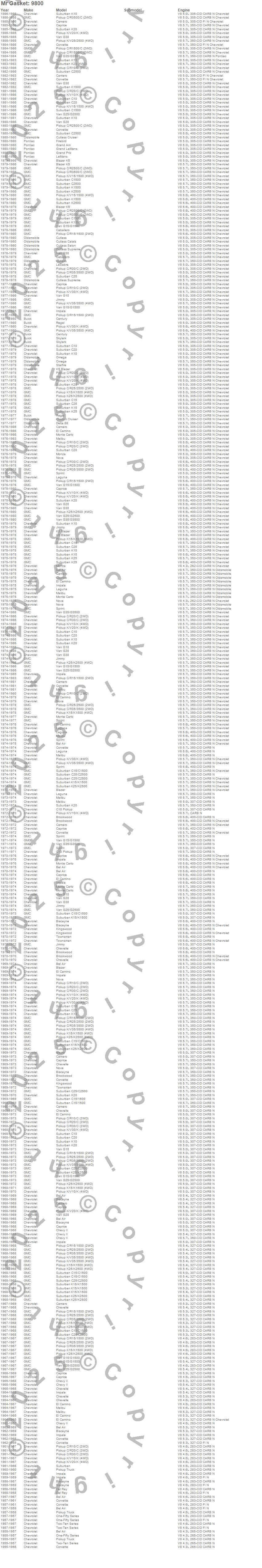 Below is an abreviated list of applications for the Valve Cover.