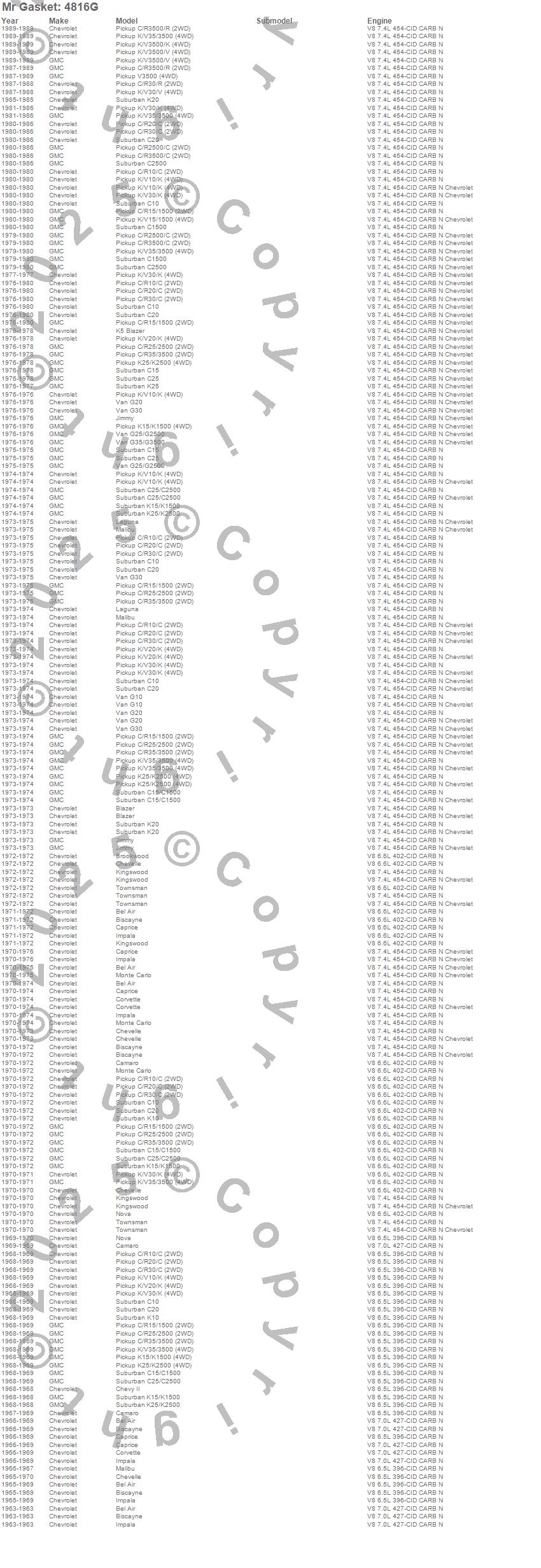 Below is an abreviated list of applications for the MLS Exhaust Gasket.