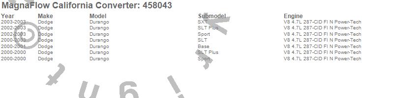 Below is an abreviated list of applications for the Direct Fit California Catalytic Converter.