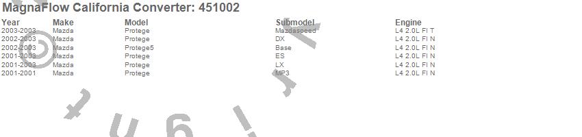 Below is an abreviated list of applications for the Direct Fit California Catalytic Converter.