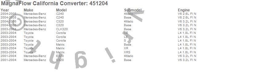 Below is an abreviated list of applications for the Universal California OBDII Compliant Catalytic Converter.