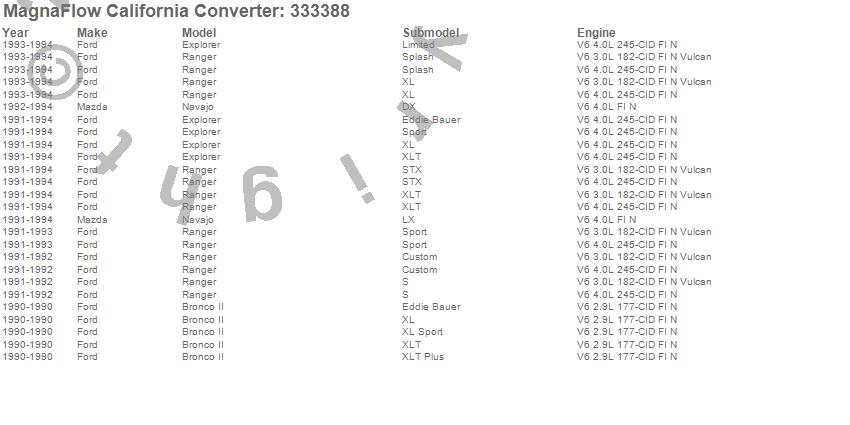 Below is an abreviated list of applications for the Direct Fit California Catalytic Converter.