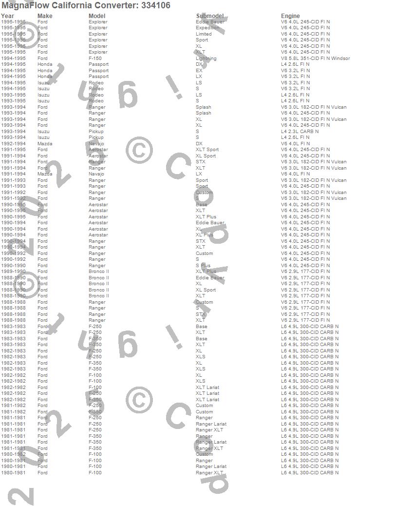 Below is an abreviated list of applications for the Universal California Catalytic Converter.