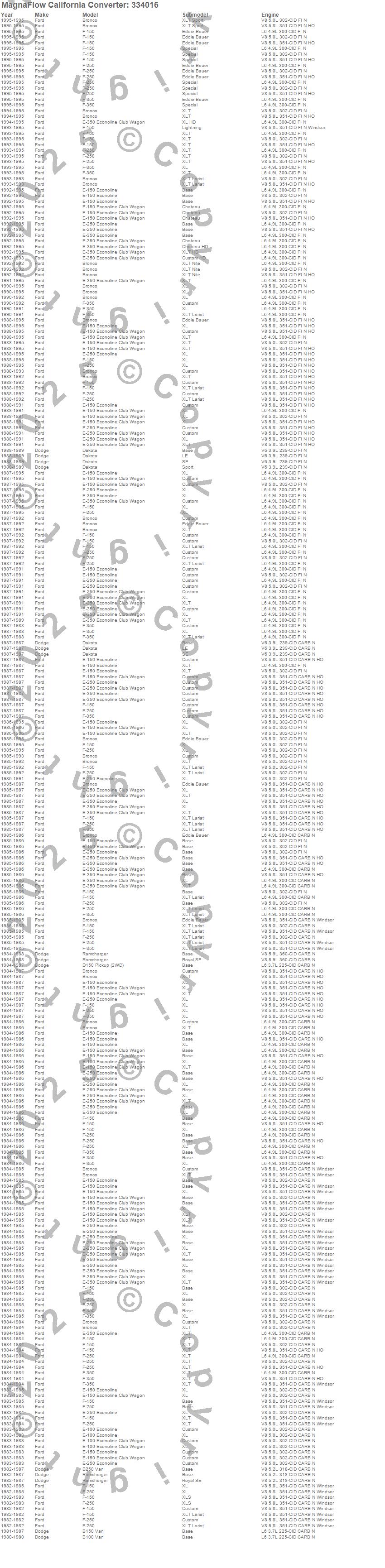 Below is an abreviated list of applications for the Universal California Catalytic Converter.