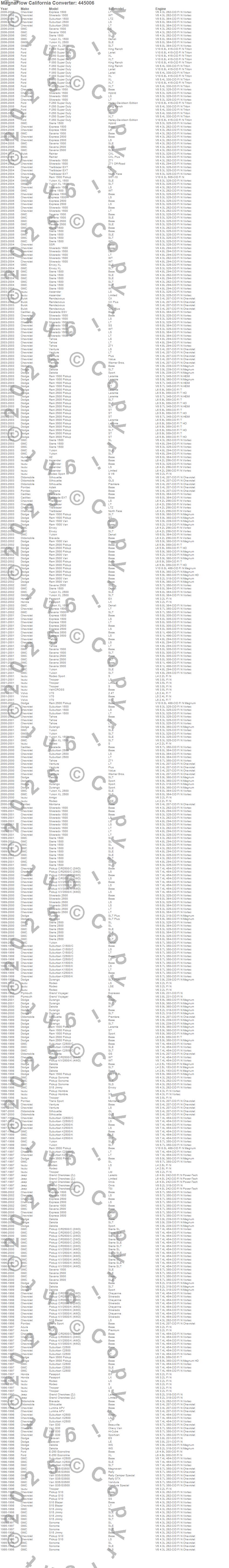 Below is an abreviated list of applications for the Universal California OBDII Compliant Catalytic Converter.