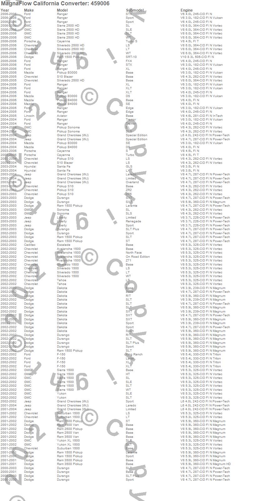 Below is an abreviated list of applications for the Universal California OBDII Compliant Catalytic Converter.