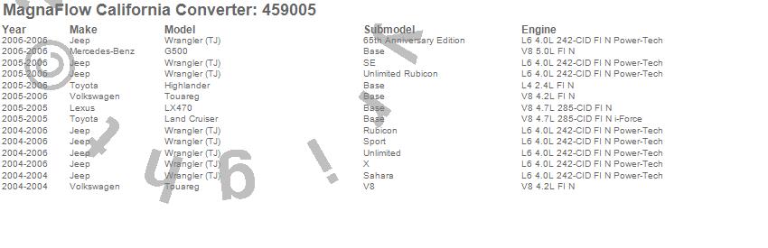 Below is an abreviated list of applications for the Universal California OBDII Compliant Catalytic Converter.