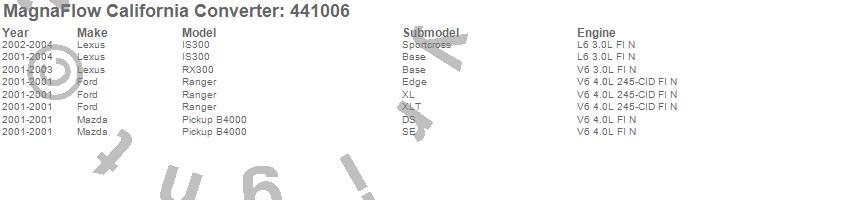 Below is an abreviated list of applications for the Universal California OBDII Compliant Catalytic Converter.