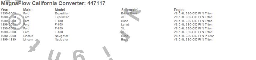 Below is an abreviated list of applications for the Direct Fit California Catalytic Converter.