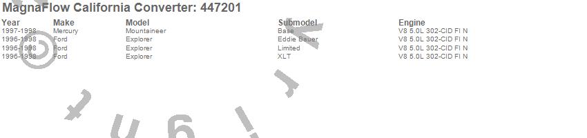 Below is an abreviated list of applications for the Direct Fit California Catalytic Converter.
