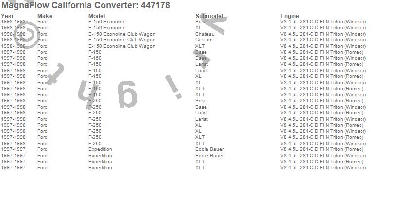 Below is an abreviated list of applications for the Direct Fit California Catalytic Converter.