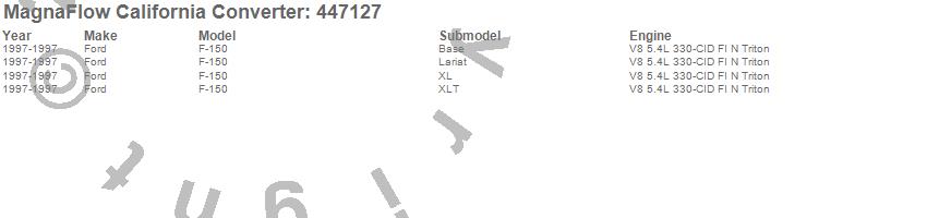 Below is an abreviated list of applications for the Direct Fit California Catalytic Converter.