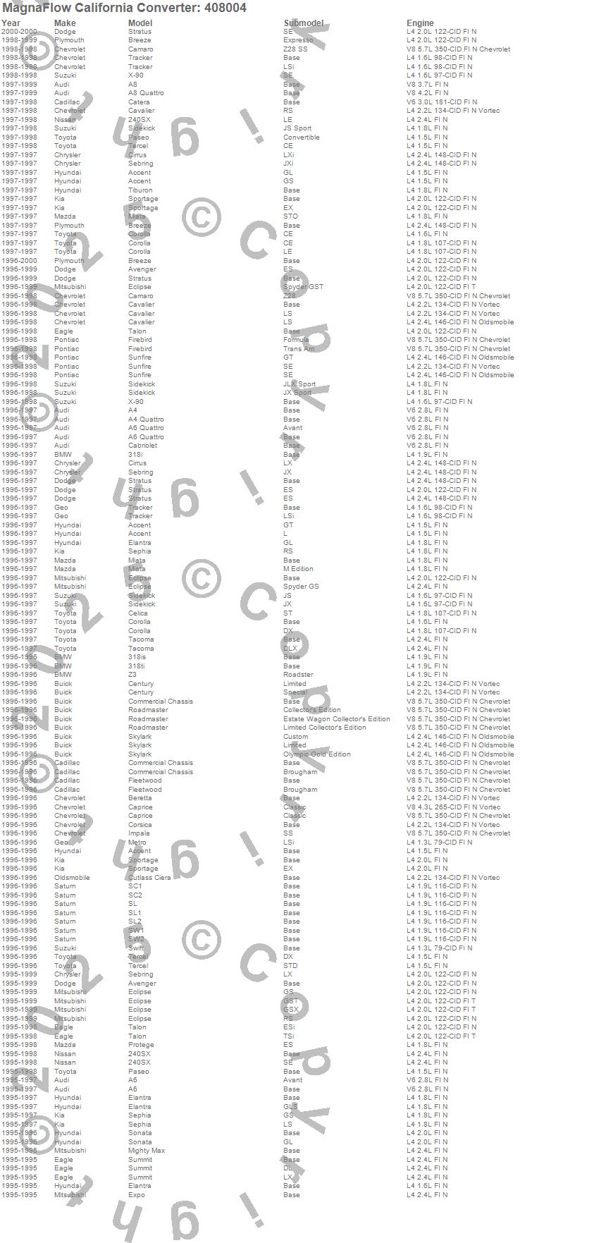 Below is an abreviated list of applications for the Universal California Catalytic Converter.