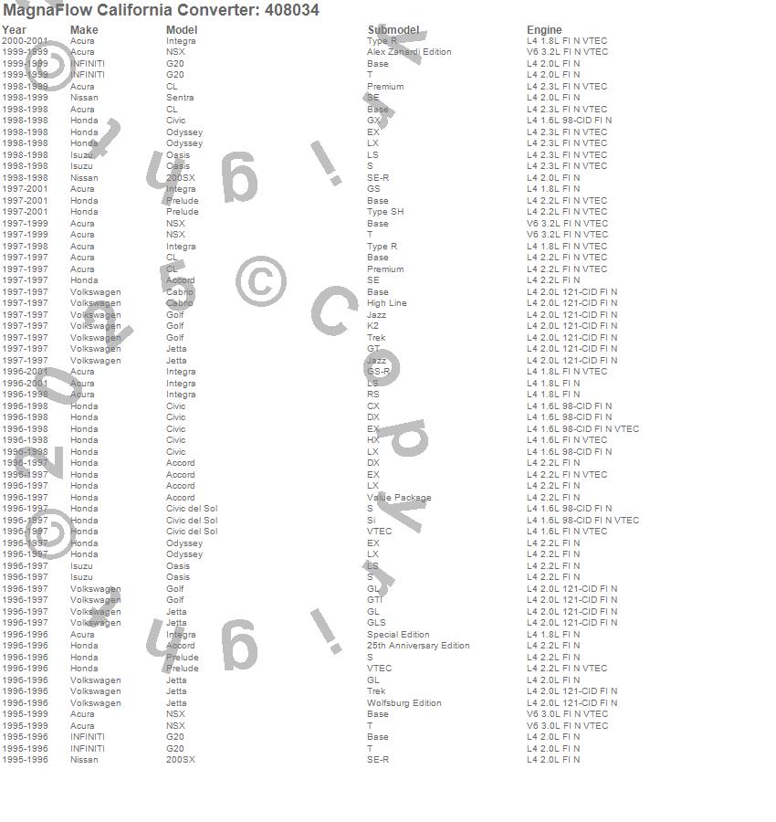 Below is an abreviated list of applications for the Universal California Catalytic Converter.