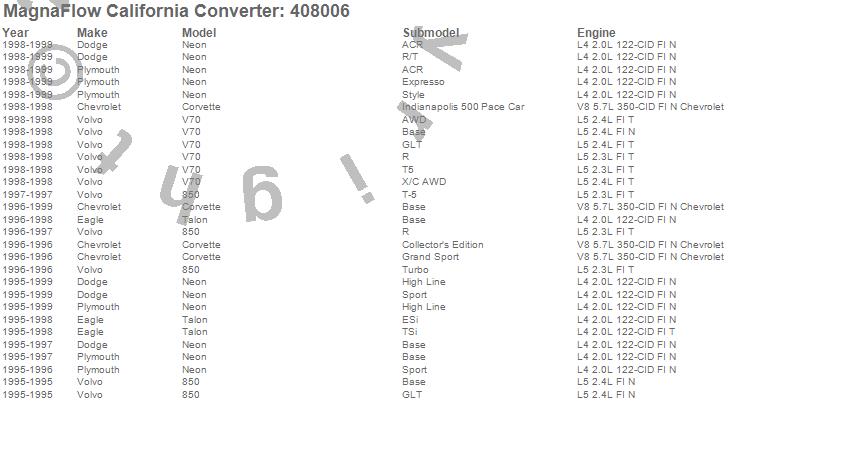 Below is an abreviated list of applications for the Universal California Catalytic Converter.