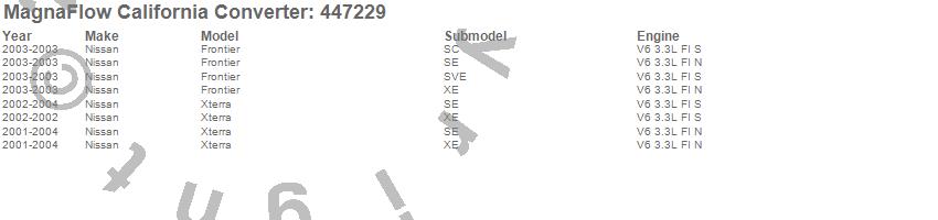 Below is an abreviated list of applications for the Direct Fit California Catalytic Converter.