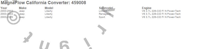 Below is an abreviated list of applications for the Direct Fit California Catalytic Converter.