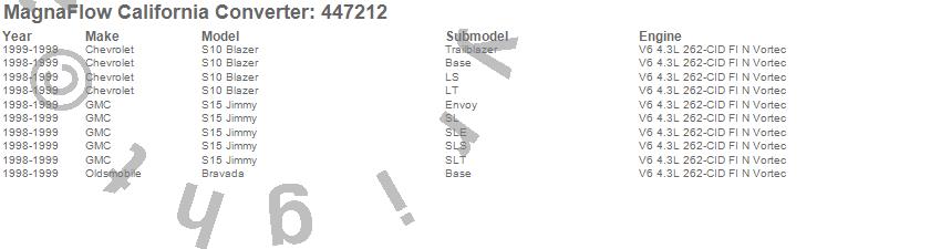 Below is an abreviated list of applications for the Direct Fit California Catalytic Converter.