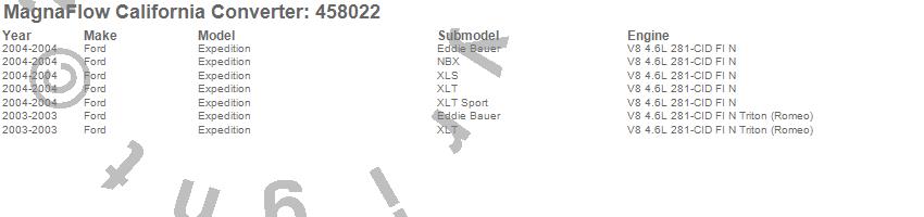 Below is an abreviated list of applications for the Direct Fit California Catalytic Converter.