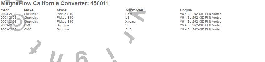 Below is an abreviated list of applications for the Direct Fit California Catalytic Converter.