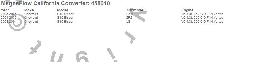 Below is an abreviated list of applications for the Direct Fit California Catalytic Converter.