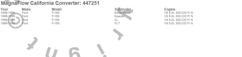 Below is an abreviated list of applications for the Direct Fit California Catalytic Converter.