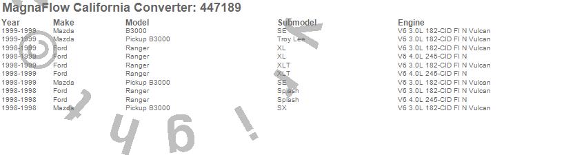 Below is an abreviated list of applications for the Direct Fit California Catalytic Converter.