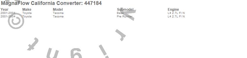 Below is an abreviated list of applications for the Direct Fit California Catalytic Converter.