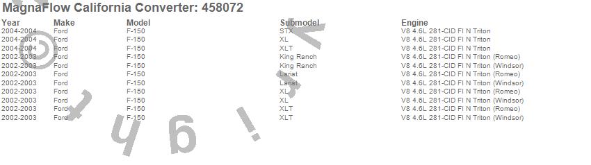 Below is an abreviated list of applications for the Direct Fit California Catalytic Converter.