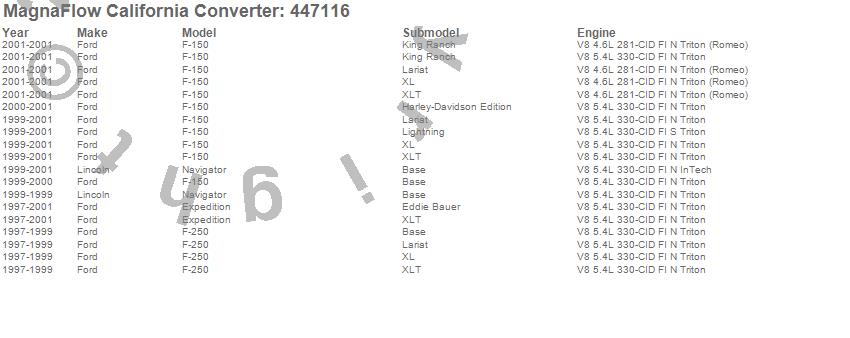 Below is an abreviated list of applications for the Direct Fit California Catalytic Converter.