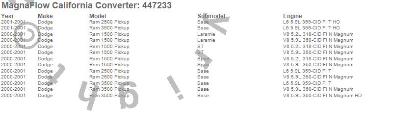 Below is an abreviated list of applications for the Direct Fit California Catalytic Converter.