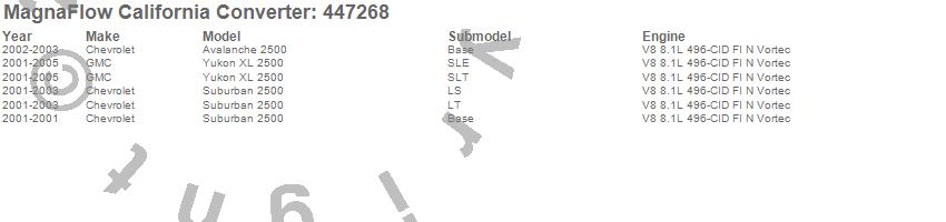 Below is an abreviated list of applications for the Direct Fit California Catalytic Converter.