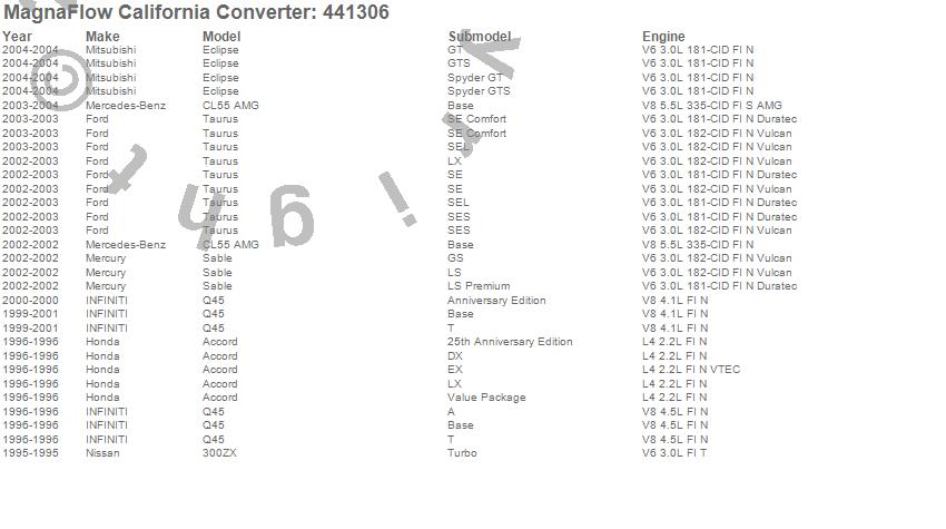 Below is an abreviated list of applications for the Universal California Catalytic Converter.