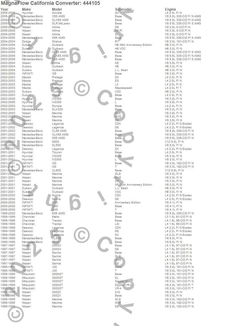 Below is an abreviated list of applications for the Universal California Catalytic Converter.