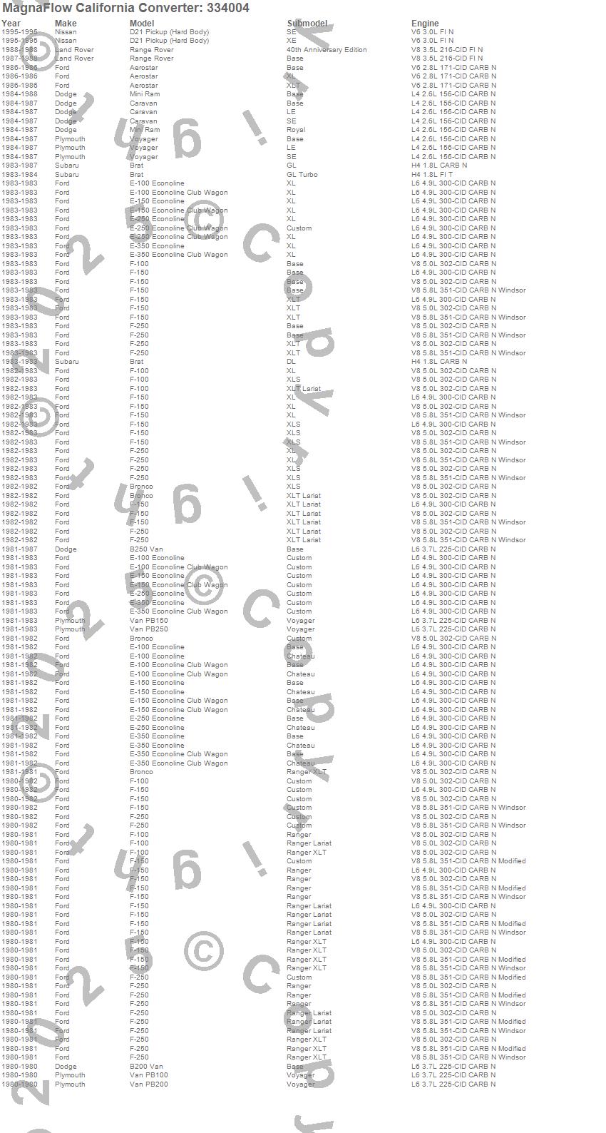 Below is an abreviated list of applications for the Universal California Catalytic Converter.