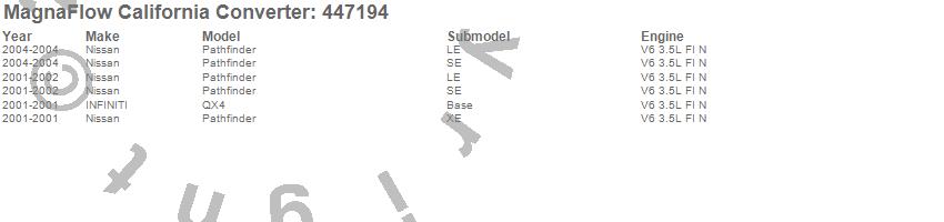 Below is an abreviated list of applications for the Direct Fit California Catalytic Converter.
