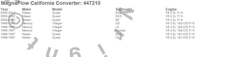 Below is an abreviated list of applications for the Direct Fit California Catalytic Converter.