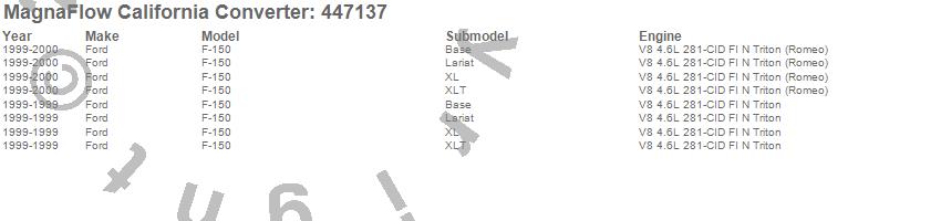 Below is an abreviated list of applications for the Direct Fit California Catalytic Converter.